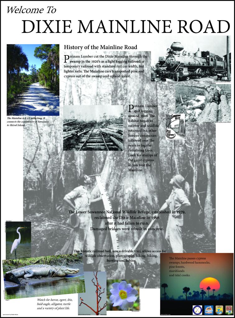 A 3′ x 4′ roadside panel telling the history of this historic Lower Suwannee National Wildlife Refuge road. It is installed in kiosks at both ends of the scenic eight-mile road.
