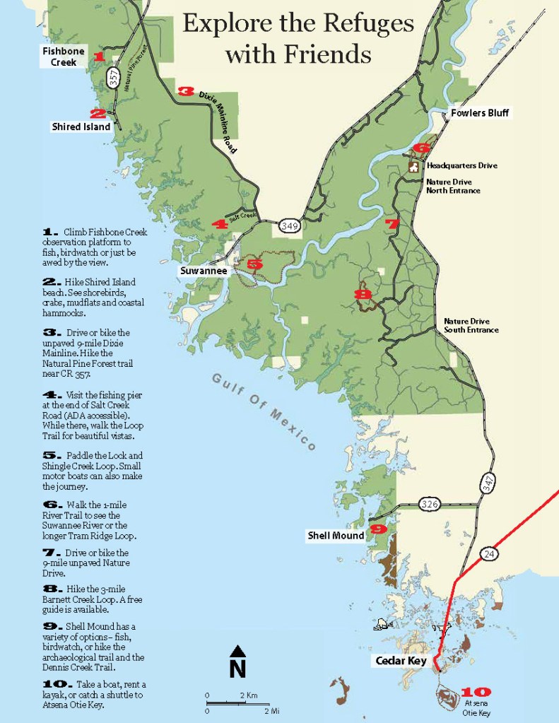 The Friends of the Lower Suwannee and Cedar Keys National Wildlife Refuges and I collaborated and published more than 25 brochures and 16 kiosk panels (so far) that educate and guide visitors. It has been a unique and wonderful experience for me, here are a few examples.