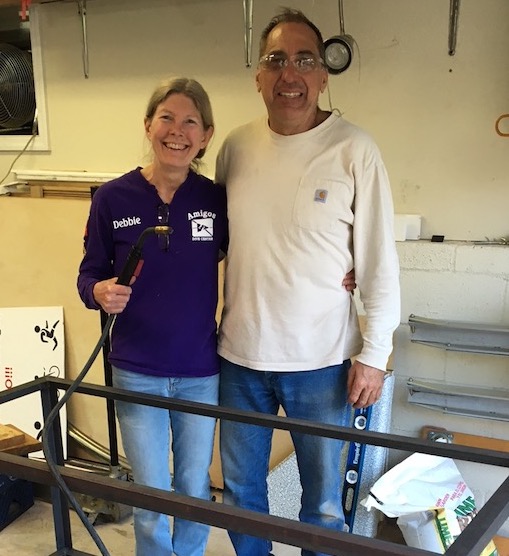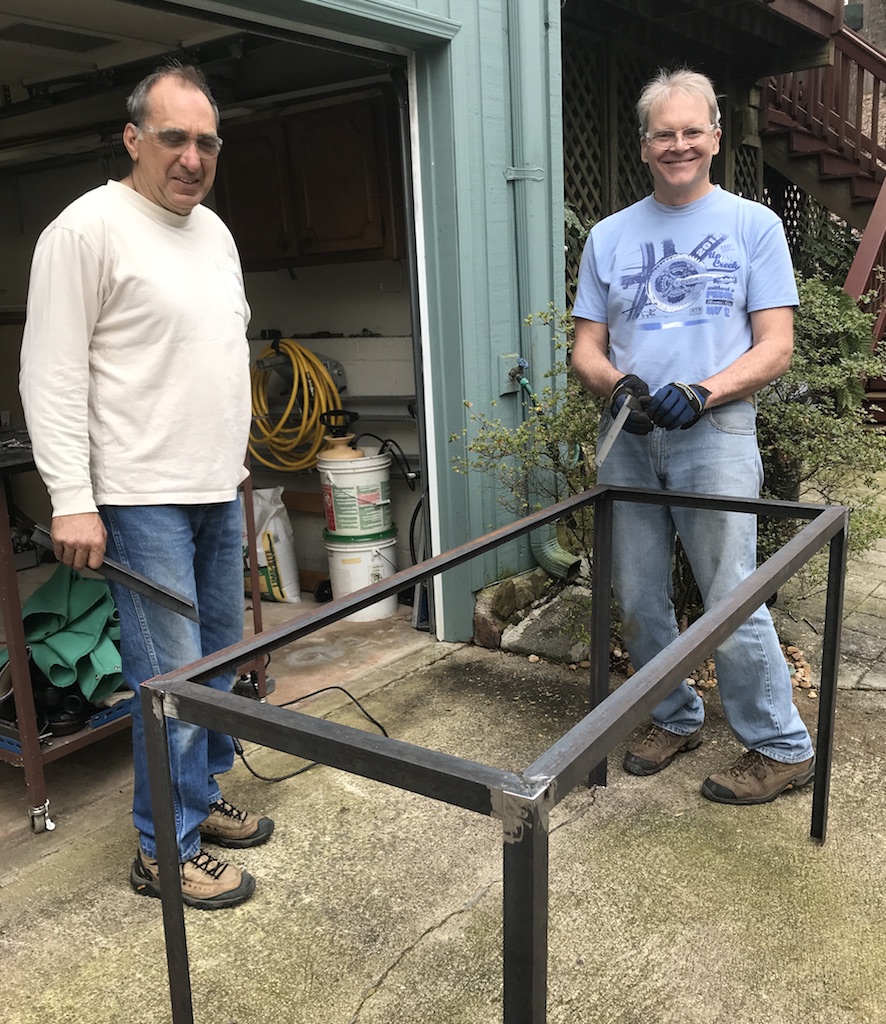 Rob gave us welding lessons to make the steel base. The bottom shelf is cypress.