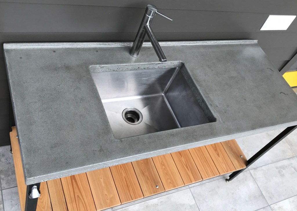 The surface was pretty smooth right out of the Melamine mold. David spent hours finish-sanding it with diamond abrasive pads to expose some aggregate, then sealed with wax.