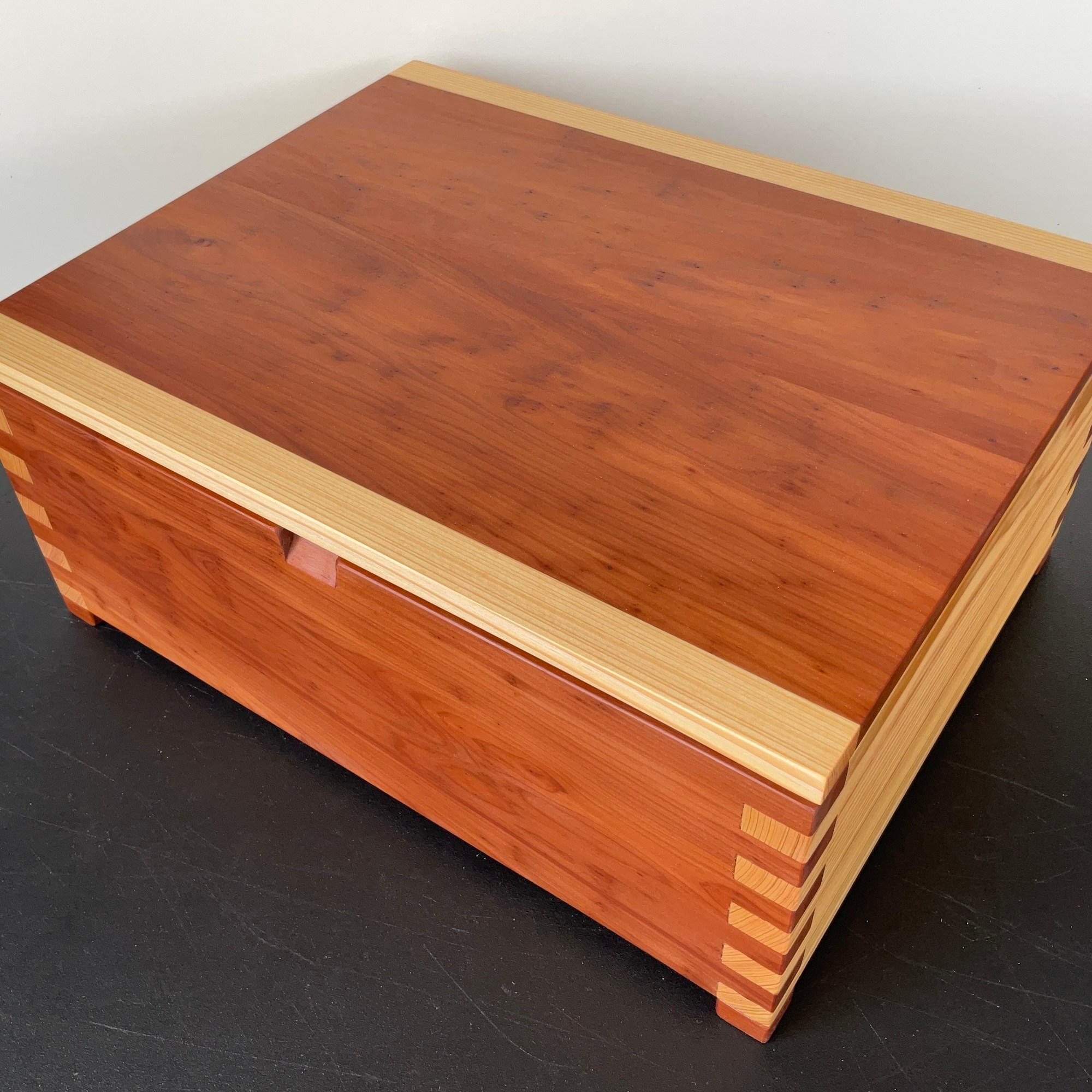 Cypress and cedar contrast to highlight the corner joints of this box.