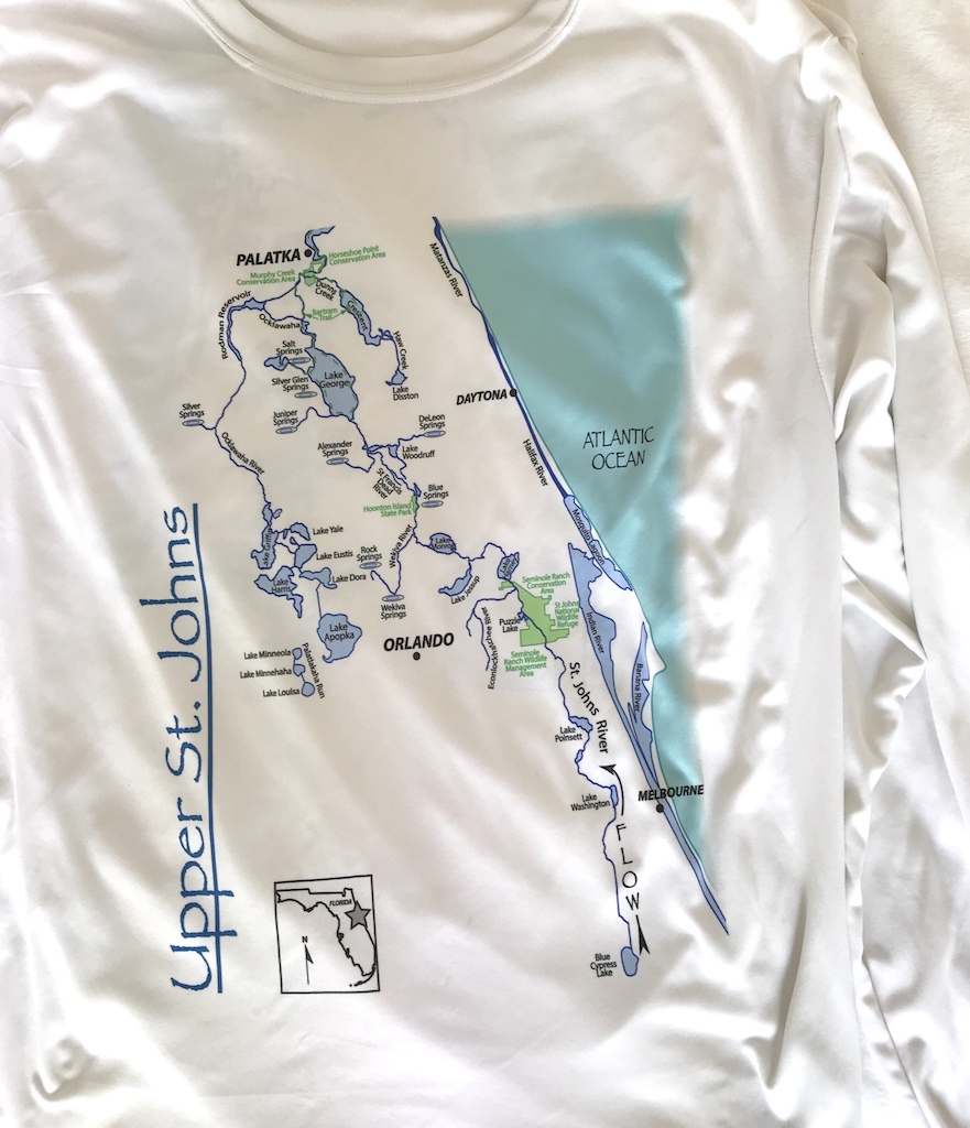 Produced for the Florida Paddling Trails Association, this two-sided shirt shows points-of-interest for paddlers along this unusual northward flowing Florida river.